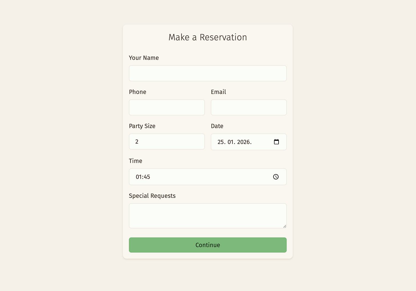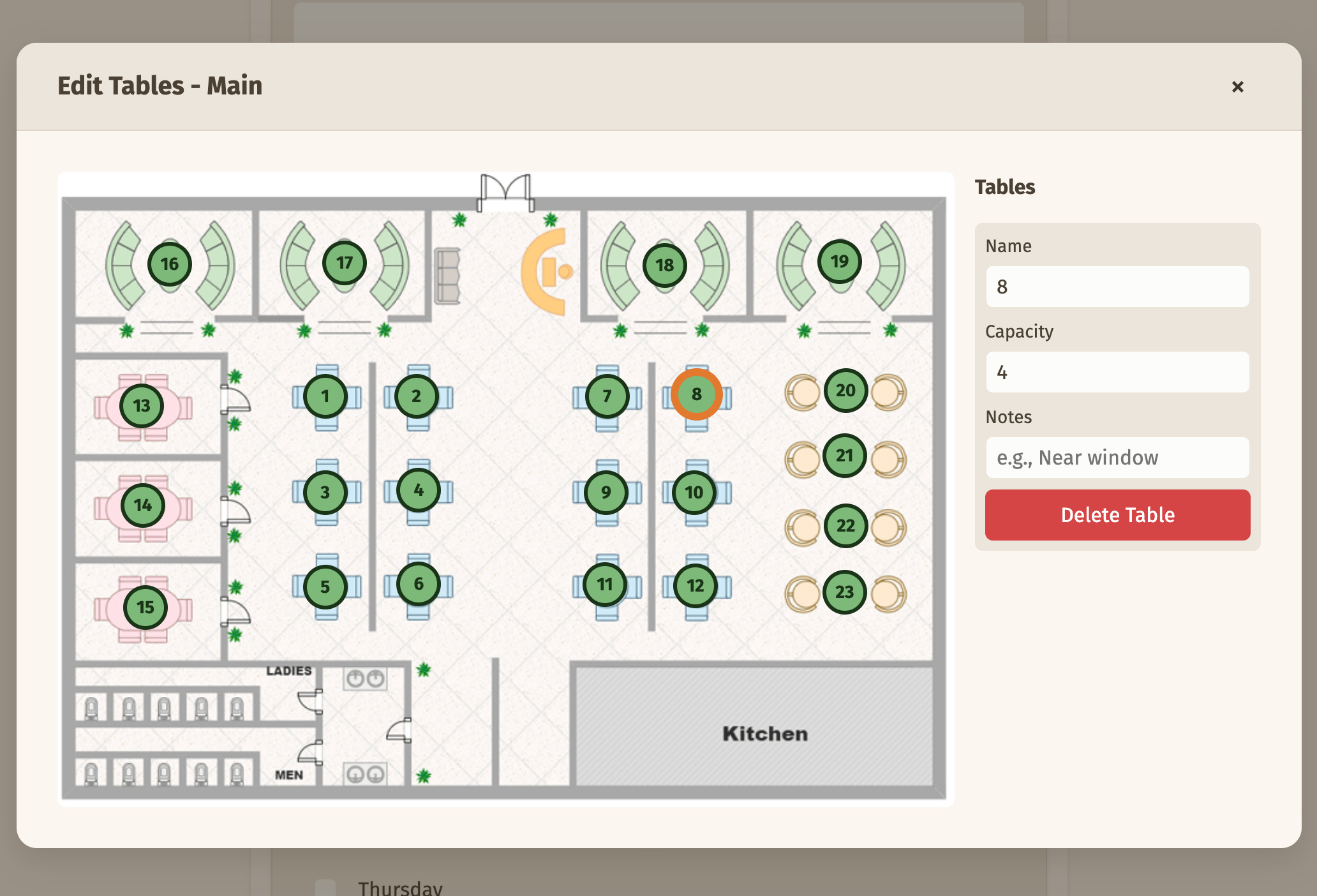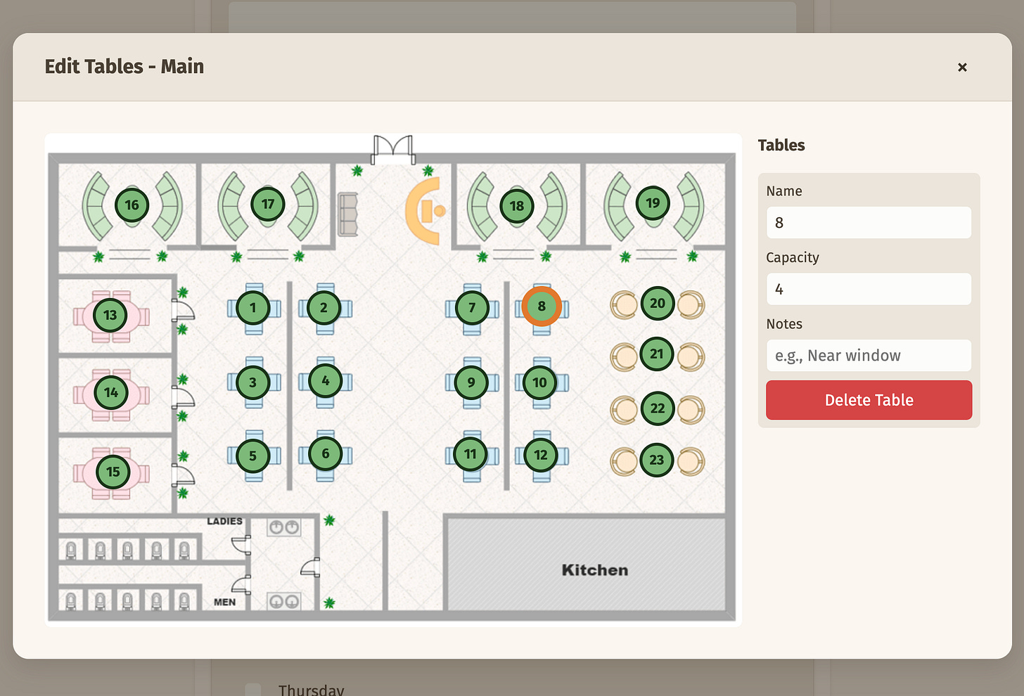 Once the restaurant is set up, the administrator can start taking reservations. There are a few ways to take reservations. Walk-in, by phone, and through the customer-facing online interface.